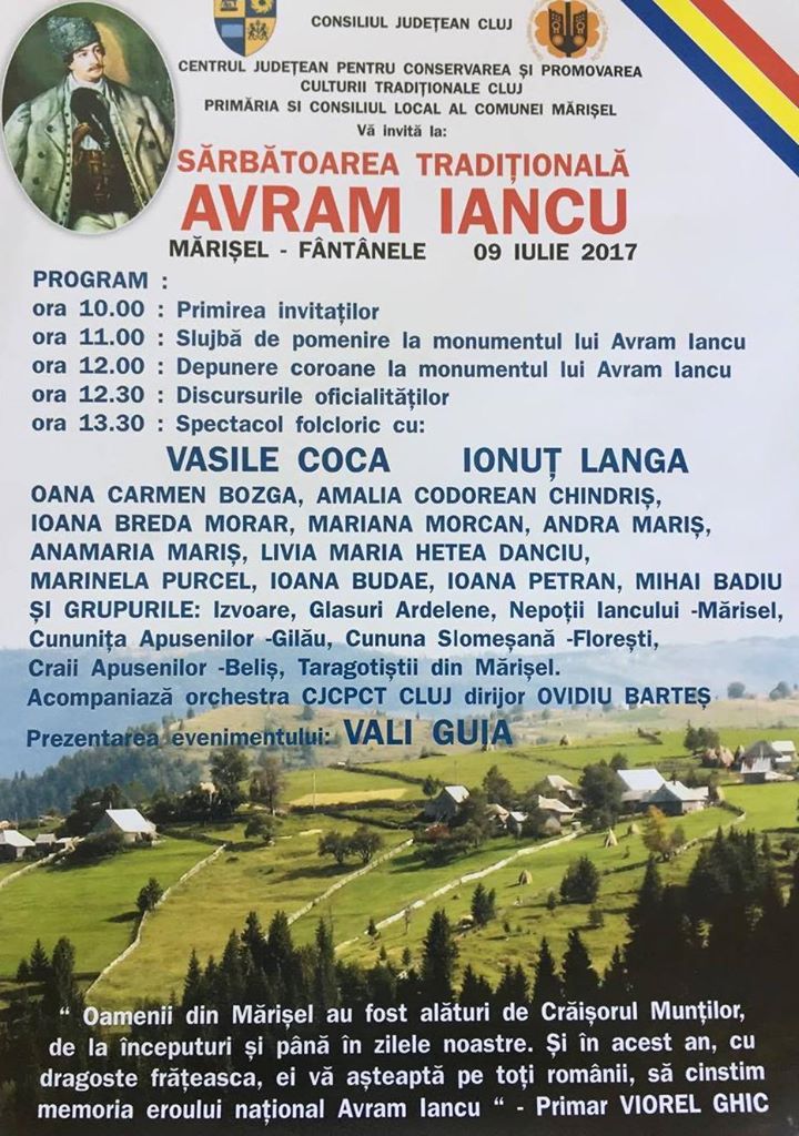 Centrul Județean pentru Conservarea și Promovarea Culturii Tradiționale Cluj, instituție de cultură aflată în subordinea Consiliului Județean Cluj, împreună cu Primăria și Consiliul Local al comunei Mărișel, organizează duminică, 9 iulie 2017, sărbătoarea tradițională de la Crucea Iancului, în zona Fântânele din comuna Mărișel.
