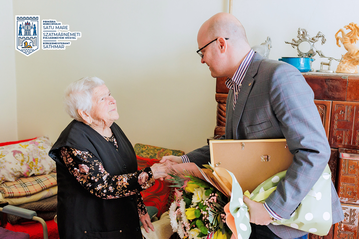 Municipiul Satu Mare se poate mândri cu o frumoasă comunitate de seniori, care și-au trăit viața cu demnitate, dând dovadă de curaj și înțelepciune, chiar și în cele mai dificile momente. Din această comunitate face parte și doamna Iulia Tomșa. Primarul municipiului Satu Mare, Kereskényi Gábor, i-a făcut astăzi, la împlinirea vârstei de 100 de ani, o surpriză și i-a urat ,,La mulți ani cu sănătate!”.