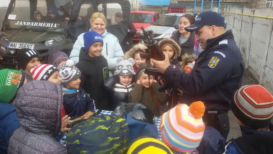 În cadrul activității organizate în preajma ,,Zilei Jandarmeriei Române”, jandarmii le au prezentat elevilor acțiuni specifice jandarmilor, dotarea și materialele.