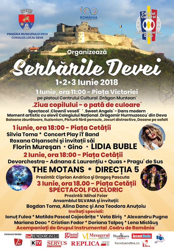 Direcţia 5, Lidia Buble, The Motans, Gino, Matilda Pascal Cojocăriţa, Veta Biriş şi Ionuţ Fulea vin la Serbările Devei, în 1-3 iunie 2018.