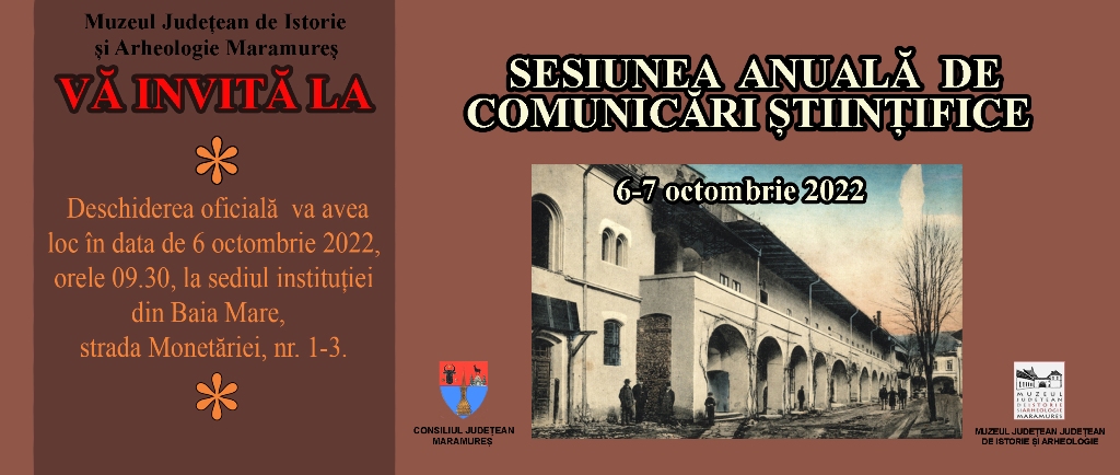 În perioada 5-7 octombrie 2022, Muzeul Județean de Istorie și Arheologie Maramureș, instituție publică de cultură aflată sub autoritatea Consiliului Județean Maramureș, organizează Sesiunea anuală de comunicări științifice.