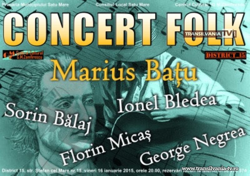 Primul va avea loc vineri, 16 ianuarie 2015 de la ora 20.00 va avea loc un concert folk cu Marius Baţu, Ionel Bledea, Sorin Bălaj, Florin Micaş şi George Negrea.