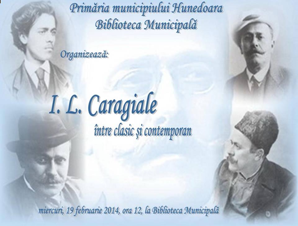 Biblioteca municipală Hunedoara și Primăria municipiului Hunedoara organizează miercuri, 19 februarie, simpozionul ”I.L Caragiale – între clasic și contemporan”. Programul va consta în: prezentarea operei și personalității scriitorului, expoziție de carte, punerea în scenă a unor schițe, vizionare “Momente și schițe” de I.L Caragiale.
