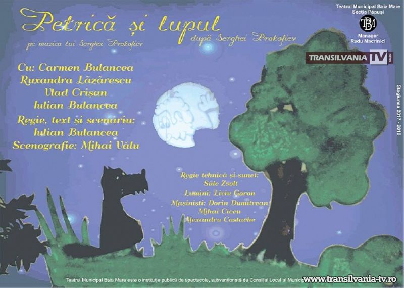 Spectacolul Secției Păpuși din Baia Mare, ”Petrică și lupul” după Serghei Prokofiev, se joacă în abonamentele pentru elevi și copii, în 18 și 19 octombrie, câte două reprezentații de la orele 10.00 și 11.15.