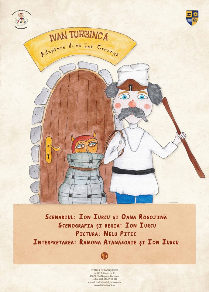 Teatrul de Păpuși ,,Puck”, instituție de cultură care funcționează în subordinea Consiliului Județean Cluj, invită spectatorii de toate vârstele, duminică, 21 ianuarie 2018, de la ora 11.00, respectiv 12.30, la premiera spectacolului ,,Ivan Turbincă”, o adaptare scenică a poveștii omonime scrisă de Ion Creangă.