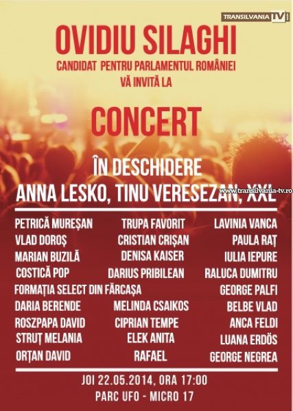 Candidatul Alianței PSD-UNPR-PC în Colegiul 2 pentru Camera Deputaților, Ovidiu Silaghi organizează joi, 22 mai, pentru toți cetățenii un super concert susținut de Anna Lesko.