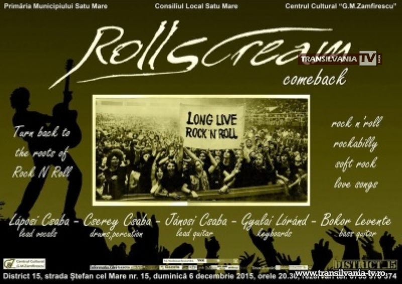 6 decembrie, ora 20.30, District 15 – Concert rock & roll cu formația Rollscream; rezervări la telefon 0755970374.