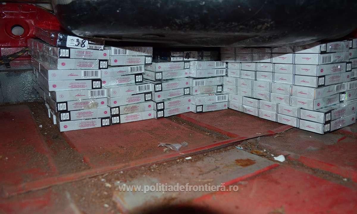 Astfel, în spațiul special amenajat din portbagajul autoturismului au fost descoperite 1.935 de pachete cu țigări, diferite mărci, de proveniență ucraineană, în valoare de 22.600 lei, marfă care a fost ridicată în vederea confiscării.