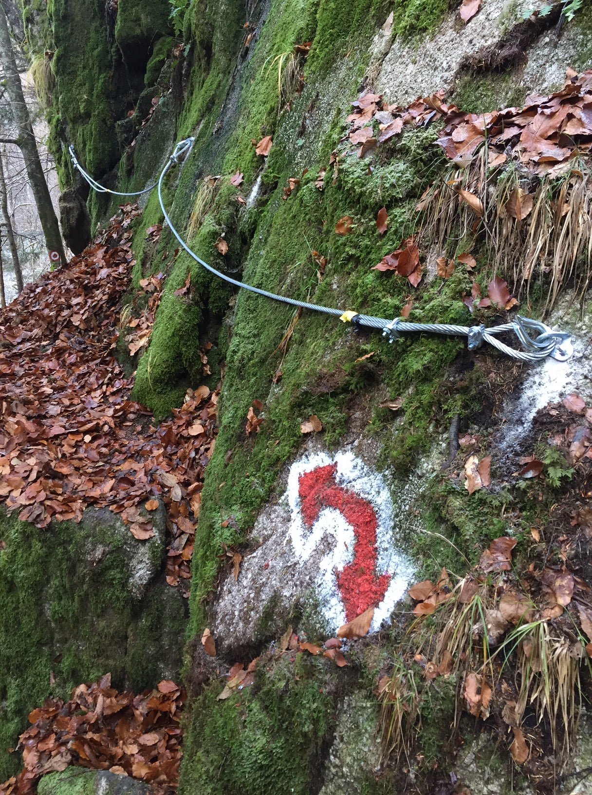 • Refugiul Salvamont Răchițele – Șaua Lespezi – Dealul Măcrișului – Valea Stanciului – Cascada Vălul Miresei – Refugiul Salvamont Răchițele (punct roșu);