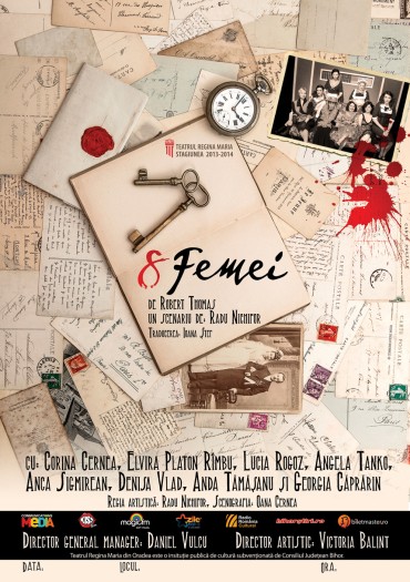 Casei de Cultură a Sindicatelor din Zalău va găydui, joi, 20 martie, de la ora 18:00, trupa „Iosif Vulcan“ a Teatrului „Regina Maria” din Oradea care va preyenta spectacolul de teatru „8 femei“. Biletele se găsesc la sediul Casei Municipale de Cultură din Zalău. Preţul unui bilet este de 10 lei.
