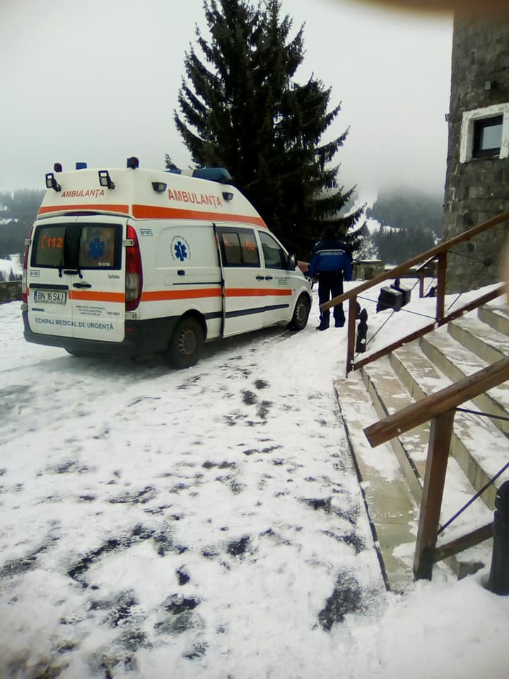Duminica, 4 februarie a.c. o turista de 51 de ani, din Cluj a alunecat in fata hotelului Dracula din Piatra Fintinele si ca urmare a loviturii suferite la cap se afla in stare de inconstienta. Jandarmii montani Piatra Fintinele au solicitat sprijin de specialitate si au supravegheat- o pana la sosirea ambulantei.