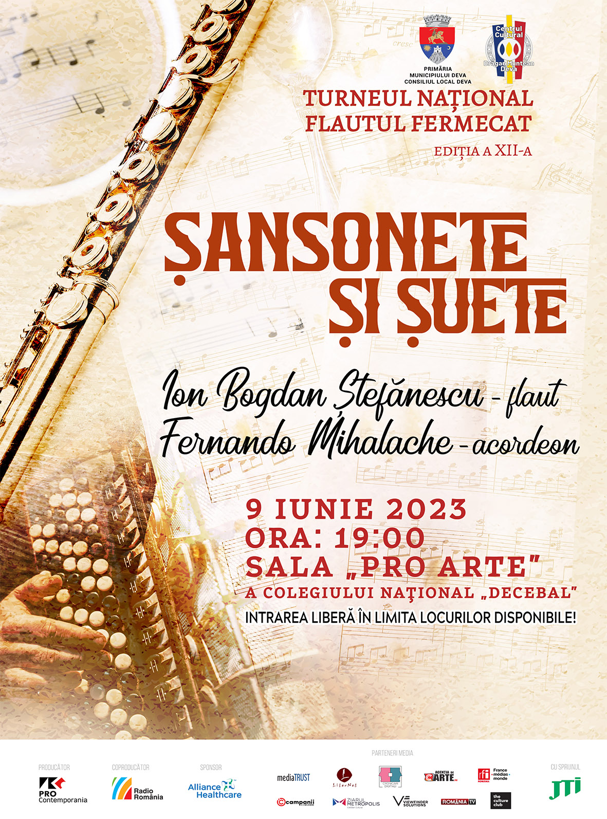 Primăria Municipiului Deva și Centrul Cultural „Drăgan Muntean” organizează un eveniment cultural de excepție, vineri, 9 iunie 2023, de la ora 19.00, în sala „Pro Arte” a Colegiului Național „Decebal” Deva.