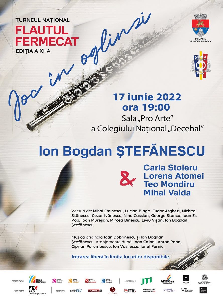 Turneul național ,,Flautul fermecat” – ediția a XI-a aduce sub titlul „Joc în oglinzi” un nou spectacol de muzică și poezie cu Ion Bogdan Ștefănescu şi discipolii săi: Carla Stoleru, Lorena Atomei, Teo Mondiru și Mihai Vaida.