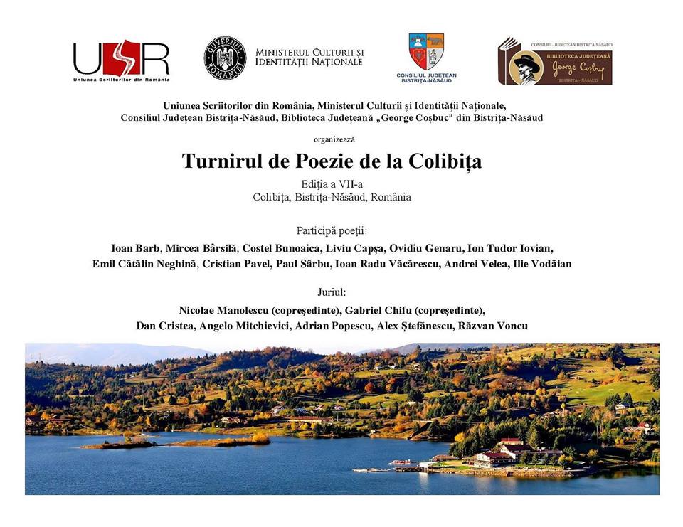 Uniunea Scriitorilor din România, Ministerul Culturii și Identității Naționale, Consiliul Județean Bistrița-Năsăud și Biblioteca Județeană „George Coșbuc” Bistrița-Năsăud organizează ediția a VII-a a „Turnirului de poezie de la Colibița”.