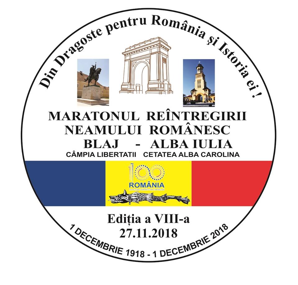 In ziua de 27.11.2018 se va desfasura cea de- a 8-a editie a Maratonului Reintregirii Neamului Romanesc, care face parte din ciclul de maratoane istorice „Din dragoste pentru Romania si istoria ei”.Organizatori: Ilie Rosu si Stefan-Decebal Achim.Parteneri: APIS Carpatica – PFA Achim Stefan Decebal, Artsport.ro, Asociatia Romana pentru Propaganda si Istorie Aeronautica (ARPIA) si Asociatia Ofiterilor in Rezerva din Romania (AORR), Asociația Valea Dacilor – organizator al festivalului Frăția Lupilor.Aceasta editie are un caracter simbolic, desfasurandu-se la 100 de ani de la infaptuirea Marii Uniri. Lungimea traseului va fi de 58 de km. Se va pleca in regim de stafeta in jurul orelor 08.00 de pe Campia Libertatii din Blaj, locul din care in anul 1848, la Marea Adunare de la Blaj, 40.000 de romani transilvaneni au strigat pentru prima oara “Noi vrem sa ne unim cu tara”. Maratonistii vor traversa prin satele Veza, Izvoarele, Rosia de Secas, Tau, Ohaba, Berghin, Straja, Hapria, Teleac, Drambar, care leaga Blajul de Alba Iulia. Ei vor reface simbolic o parte din traseul parcurs de romanii transilvaneni, in drumul lor catre Alba Iulia, pentru a participa la Marea Adunare din 1 decembrie 1918. Participantii vor alerga grupat, vor fi echipati in tricouri albastre, galbene sau rosii si vor purta cu ei drapelul Romaniei, drapelul Romaniei din timpul Regelui Ferdinand, un steag al lui Mihai Viteazul si un steag al dacilor, ajungand in Cetatea Alba Carolina in jurul orei 16.00.La acest maraton incarcat de istorie au fost invitati sa participe maratonisti cu experienta, care vor aduce omagiul lor, eroilor care au infaptuit Marea Unire:-Stefan Salagean, din Bistrita-Bargaului, castigator a numeroase competitii din Ciclul de maratoane istorice “Din dragoste pentru Romania si istoria ei”, avand in palmares peste 100 de maratoane oficiale alergate;-Mihai Ungur, din Bistrita, maratonist cu experienta, castigator a numeroase competitii de alergare si organizatorul competiției Novembre Run de la Bistrița;-Ioan Levente Polgar, din Aiud, organizatorul maratonului montan de la Aiud, participant la nenumarate competitii, printre care si Ultramaratonul Mont Blanc Chamonix din Franta. De asemenea, acesta este detinatorul unei performante greu de atins, reusind sa traverseze in alergare Romania de la Est la Vest in 14 zile;-Aristide Necula, din Orastie, organizatorul Ultramaratonului “ULTransilvania” intre Cetatea Sarmizegetuza si Castelul Corvinilor din Hunedoara si participant la nenumarate competitii sportive, printre care si Ultamaratonul din desert. “Maraton de Sables”;-Costica Donos, din Codlea, participant la numeroase competitii de alergare;-Dan Bilțiu, din Beclean, participant la nenumarate competitii de maraton;-Marilena Cimpeanu din Bucuresti, participanta la numeroase competitii, printre care si Maratoanele de la Berlin si New York;-Ilie Rosu, din Adjud, alergator in competitii de maraton, initiator al Maratonului Reintregirii Neamului Romanesc, care va alerga cel de-al 211-lea maraton cu drapelul Romaniei, atingand in aceasta cursa, 9000 de km alergati cu acesta;Competitia din acest an este initiata de Ilie Rosu si de Stefan-Decebal Achim, din Almasul Mare, organizatorul ultramaratonului de 100 km “Alerg la stralucirea soarelui” din ziua solstitiului de vara, intre Cetatea dacica Costesti si Monumentul Eroilor din Rosia Montana.Startul va fi dat din fata Monumentului de pe Campia Libertatii de catre Stefan-Decebal Achim, care va fi echipat in costum de dac.Participantii vor sosi in fata Catedralei Reintregirii Neamului, fiecare dintre ei primind medalii, cupe si diplome. Premierea va fi efectuata de domnul general de brigada (rez) Mihail Taparlea, vicepresedintele Asociatiei Ofiterilor in Rezerva din Romania.Trei dintre participantii la Maratonul Reintregirii Neamului Romanesc vor lua startul in ziua de 1 decembrie la “Maratonul 1 decembrie” organizat in Bucuresti, intr-o alergare de alti 42 km, marcand la final 100 de km alergati la 100 de ani de la Marea Unire de la 1 decembrie 1918.Col. (rez) Ilie RosuE-mail: ilierosu@gmail.comWebsite: www.ilierosu.ro