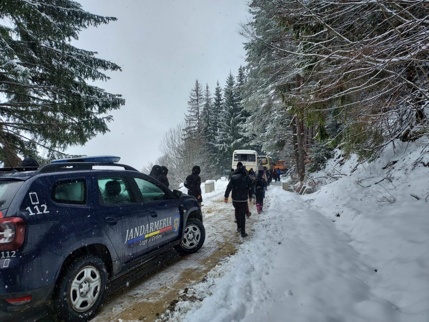 Până astăzi, cei 110 elevi s-au aflat la Complexul Turistic Alpina Blazna, în cadrul Programului Școala Verde. Având în vedere zăpada depusă în ultimele zile, pentru a coborî în siguranță, aceștia au avut nevoie de sprijinul jandarmilor montani din Rodna. Drumul de pe traseul Alpina Blazna – Șanț, a fost curățat de un utilaj al complexului de agrement, dar având în vedere stratul proaspăt de zăpadă, exista riscul derapării autocarelor, ca urmare s-a luat decizia ca o parte din acest traseu să fie parcurs de către aceștia pe jos. Jandarmii montani din Rodna i-au însoțit pe tot parcursul acestui traseu iar câțiva elevi cu probleme medicale au fost transportați în siguranță, cu autovehiculul Jandarmeriei montane până la locul îmbarcării în autocare.
