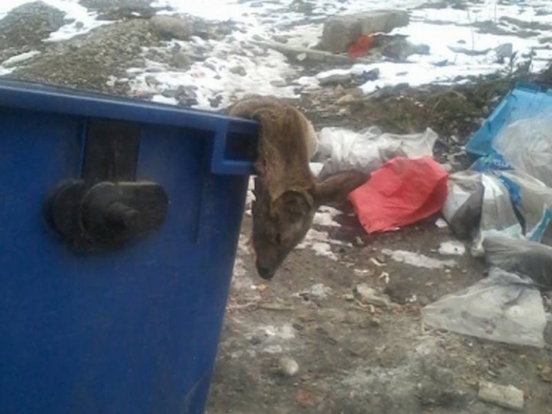 Pe rețeaua de socializare Facebook au apărut fotografii cu un pui de căprioară aruncat într-un tomberon din zona blocului Lamă.