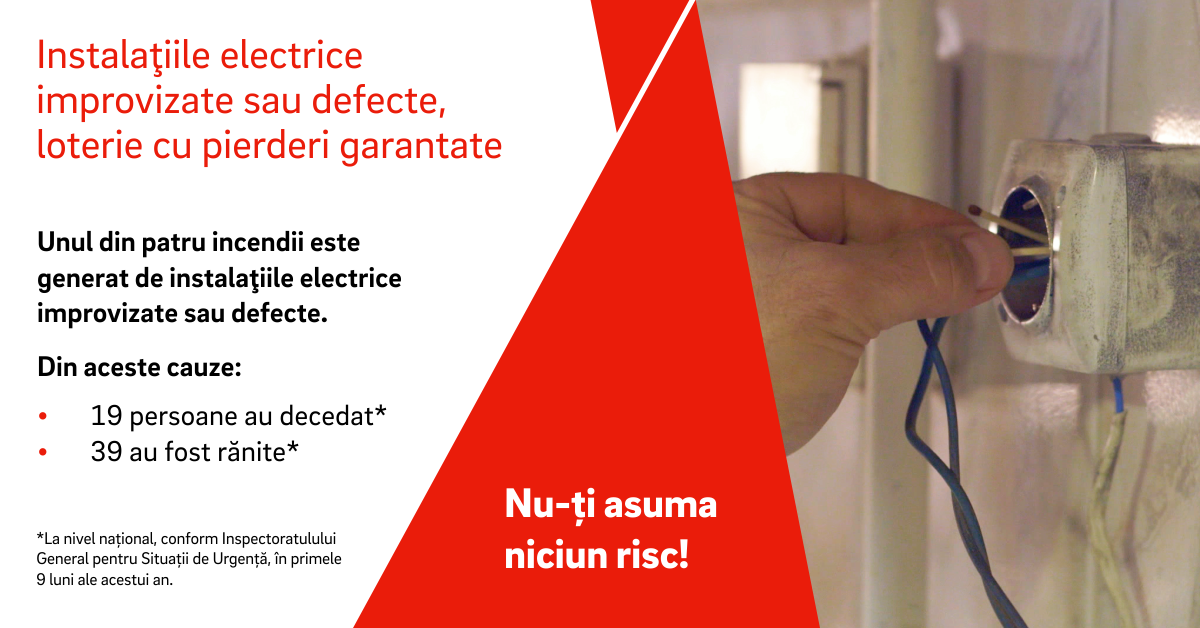 Instalaţiile electrice improvizate sau defecte, loterie cu pierderi garantate!Unul din patru incendii este declanșat de instalaţiile electrice defecte sau improvizate;19 persoane au decedat şi 39 au fost rănite în primele 9 luni ale acestui an în incendii produse din aceste cauze;O priză cu urme de fum, un întrerupător care face arc electric, un cablu ce trece pe sub un covor, un prelungitor improvizat pe o pardoseală de lemn, cumulat cu siguranţe necalibrate sunt doar câteva dintre situaţiile ce pot declanşa în orice moment un incendiu violent într-o locuinţă. În primele nouă luni ale anului, la nivel național, conform datelor Inspectoratului General pentru Situaţii de Urgenţă, 19 persoane au decedat şi 39 au fost rănite din cauza instalaţiilor electrice defecte sau improvizate. Din păcate, la această statistică îngrijorătoare, se adaugă 9 persoane care și-au pierdut viața și alte 31 de persoane care au avut de suferit ca urmare a unor incidente cauzate de aparate electrice lăsate sub tensiune.Suntem uneori martori la aceste tragedii, alteori aflăm despre ele din presă. Compătimim victimele pe moment, dar ar trebui să reflectăm și să ne întrebăm: „De ce s-a întâmplat?”, „Sunt şi eu în această situaţie?”, „Ce pot să schimb la mine acasă pentru a nu ajunge într-o situație asemănătoare?” Și nu este suficient să ne punem întrebări, trebuie să facem ceva, pentru a îmbunătăţi situaţia în care, poate, ne aflăm şi noi.Modul de acțiune „Dorel” îl blamăm ori de câte ori putem, dar îl aplicăm și noi destul de des, fără să conștientizăm consecințele care pot apărea în orice moment. Din dorinţa de a mai adăuga câteva grade la temperatura din locuinţe apelăm la aparate de încălzit electrice, fără să avem în vedere riscurile atunci când:alimentăm mai multe aparate electrice din aceeaşi priză, iar cablurile se încălzesc şi iau foc;încercăm să “păcălim” o siguranţă care “sare” (se deconectează) și îi punem o sârmă mai groasă sau blocăm declanşarea cu un băţ;folosim un calorifer electric, dar avem nevoie de un prelungitor mai lung şi îi adăugăm o bucată de cablu pe care o legăm cum ne pricepem, lăsând-o neizolată pe un covor sau o izolăm cu scotch;Exemplele pot continua, dar rezultatul duce inevitabil în aceeași direcție: un eveniment tragic. Pentru a pune capăt acestei loterii cu pierderi garantate este util să învăţăm, să prevenim şi să acţionăm responsabil. De aceea, Delgaz Grid, în calitate de distribuitor de energie, atrage atenția că trebuie să respectăm câteva recomandări esenţiale:nu sunt electrician autorizat, nu mă apuc să experimentez – pot declanşa un incendiu sau pot să fiu electrocutat;apelez la specialişti pentru înlocuirea echipamentelor electrice ce prezintă defecţiuni: tablouri electrice, doze, prize, întrerupătoare etc.;nu mai folosesc un aparat de încălzit electric dacă termostatul este defect sau sunt elemente de plastic topite;îndepărtez materialele combustibile (haine, documente etc.) din vecinătatea aparatelor de încălzit electrice;verific cu un electrician instalaţia, ori de cîte ori se deconectează o siguranţă sau ori de câte ori observ că ceva nu e în regulă;apelez la un electrician autorizat dacă vreau să utilizez consumatori mari de energie în locuinţă (radiatoare electrice, boilere, instanturi de apă caldă etc.) – este posibil să am nevoie de modificarea instalaţiei pentru a fi în siguranţă şi implicit de avizul distribuitorului de energie.Instalaţiile interioare de energie electrică se află în proprietatea consumatorilor, fiind în responsabilitatea acestora să le utilizeze corect şi să dispună măsurile de verificare şi remediere a unor eventuale defecţiuni. Orice intervenţie asupra instalaţiilor electrice trebuie realizată doar de către specialişti autorizaţi, care oferă garanţia respectării normelor tehnice şi de siguranţă. Solicitarea serviciilor unor „meşteri de ocazie”, chiar dacă aparent presupune costuri mai mici, implică riscul executării unor lucrări defectuoase ce pot duce la incendii cu distrugeri de bunuri materiale, la rănirea sau decesul unor persoane.În cadrul parteneriatului „ Împreună pentru siguranță”, încheiat în 2012 între I.G.S.U., E.ON România și Delgaz Grid, au fost derulate mai multe campanii comune de informare şi conştientizare a cetăţenilor privind riscurile la care se expun în cazul utilizării necorespunzătoare a energiei.Astfel, în ultimii ani au fost derulate campaniile: “F.O.C – Flăcările Omoară Copii” (lansată în septembrie 2012), destinată conştientizării pericolelor la care sunt expuşi copiii lăsaţi singuri sau nesupravegheaţi în casă, urmată de “R.I.S.C.- Renunţă! Improvizaţiile sunt Catastrofale!” (lansată în noiembrie 2012), respectiv „R.I.S.C. – Siguranţa NU e un joc de noroc!” (decembrie 2013). Acestea şi-au propus nu doar să informeze şi să sensibilizeze populaţia, ci şi să schimbe, în timp, comportamentul legat de utilizarea corectă a surselor de energie. De asemenea, în 2015, E.ON România s-a alăturat campaniei „Nu tremur la cutremur”, iniţiată de Ministerul Afacerilor Interne şi derulată la nivel naţional prin I.G.S.U. În 2016, pornind de la necesitatea reducerii numărul de victime şi a pagubelor materiale, am iniţiat, sub egida R.I.S.C., campania de informare preventivă a populaţiei cu sloganul „Mai bine previi, decât să nu fii!”, pentru adoptarea unei atitudini proactive, prin sensibilizarea opiniei publice în vederea montării detectoarelor de incendiu în locuinţa proprie. Campaniile R.I.S.C. „Mai bine previi, decât să nu fii!” şi „Siguranţa nu e un joc de noroc!” au continuat în anul 2017 și 2018, mesajele principale fiind curăţarea coşurilor de fum cu firme specializ