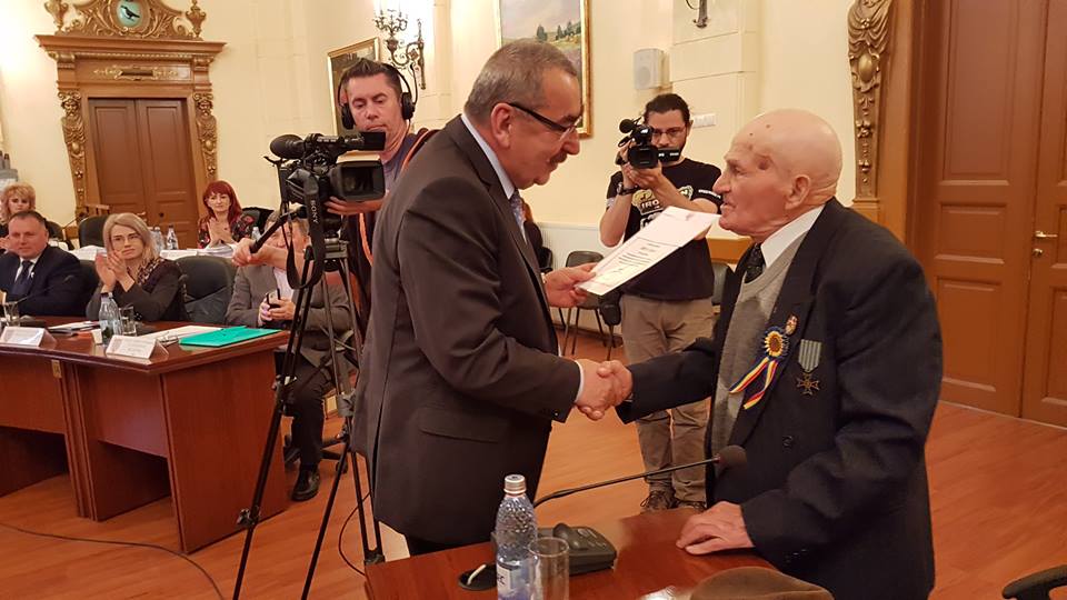 Moment emoționant în timpul ședinței Consiliului Județean Hunedoara. În urma votului consilierilor, Vasile Crețu, veteran de război din municipiul Brad, a primit o Diplomă de Excelență și un premiu în valoare de 1.000 de lei, cu ocazia împlinirii a 100 de ani de viață. Domnia sa a venit personal în sala de ședințe pentru a-i fi înmânat premiul.