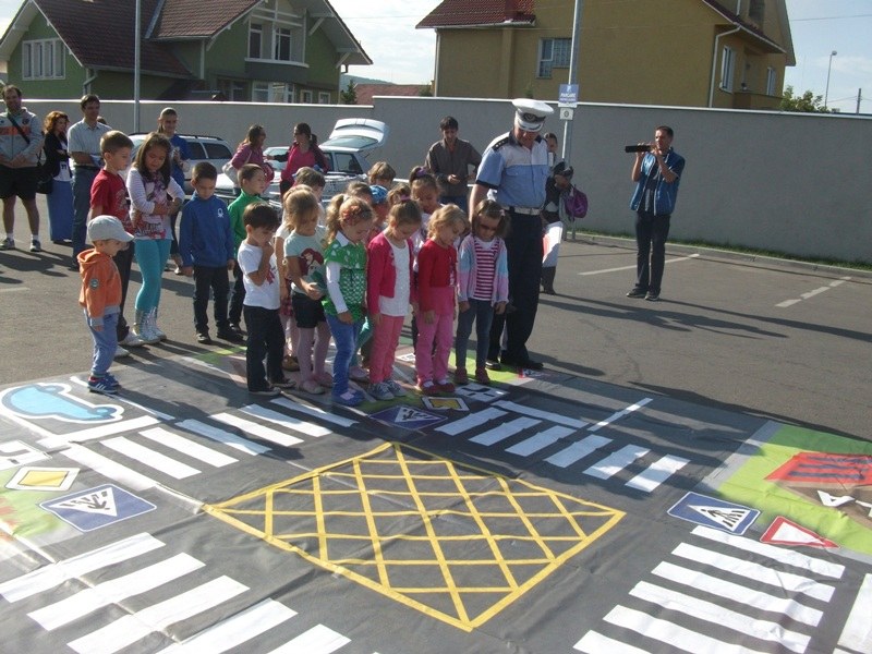 Sâmbătă, 20 septembrie, începând cu ora 10.00, la cele trei supermarketuri partenere din municipiul Bistriţa şi oraşul Năsăud, zeci de copii au participat la un joc demonstrativ organizat de către ofiţerii de prevenire a criminalităţii şi poliţiştii rutieri. În parcările magazinelor au fost amenajate puncte de informare şi au fost amplasate orăşele miniaturale unde cei mici au avut ocazia să înveţe cum să fie pietoni responsabili.