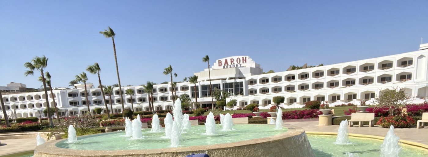 Aici micile detalii chiar conteaza. Cladirea nu se aseamana cu nimic. Poate doar cu Coloana Infinitului, daca ti-o imaginezi in pozitie orizontala. Interioarele abunda de marmura rosie, cu balustrade discret suflate in aur. Camerele de 40 de mp, cu podele din marmura, la fel ca si lavoarele, au mobila din lemn masiv. Lenjeria din bumbac egiptean se schimba zilnic facand patul mai confortabil. In baia eleganta, plina de prosoape pufoase si de servetele doar din bumbac de cea mai buna calitate, esti rasfatat cu sapun, sampon si balsam, ce contin minerale din Marea Moarta. Sala de mese este un restaurant marca Michelin, unde fetele de masa din bumbac alb egiptean, se schimba dupa fiecare turist care a servit masa. Oaspetii sunt intampinati de ospatari imbracati in camasa alba cu maneca lunga, cravata si vesta din matase, in timp ce pe mese ard mocnit lumanari, in sfesnice de cristal. Mancarurile diversificate, sunt gatite la nivel de arta, de chefi bucatari pregatiti in scoli celebre. Pe langa gustul desavarsit, aspectul este unul atent studiat. Gradina enorma, decorata cu arbori cu flori de bumbac comestibile, cu Corisia, arborele de ata dentara sau cu gard viu, din arbusti cu flori ce par de hartie, printre bancile de piatra, lumineaza frumusetea locului. Iar pe gazonul perfect tuns, cateva pupeze imbracate in culori vii, brun deschis roșcat pe cap si piept, iar pe aripile negre, dungi albe, se plimba printre vrabiutele mici si gurese. Senzatia pe care ti-o da este de om liber, ajuns in gradinile Semiramidei, alintat de minunatiile florale ale vietii. Aici nimeni nu poarta bratara, turistii sunt oaspeti, nu clienti. Pe plaja cu nisip din cel mai fin, iubitorii de Marea Rosie au sezlonguri extralargi, acoperite cu saltele albe, cu perne la cap, din spuma memory foam si pot privi soarele minunat, de sub umbrelele impletite din ramuri de pamier, asezate la 5 metri distanta intre ele. La amiaza, cand Ra devine mai calduros, unul dintre angajati te racoreste cu stropi de apa si esenta de menta si iti ofera apa cu bucati de lamaie. Sau cafea gen Starbucks, servita in cesti de portelan, decorate in cel mai pur stil castelan englezesc. Daca vrei mai multa racoare, ai la dispozitie marea, cu fundul gros de nisip fin, unde se zbenguie pestii multicolori, printre corali, intr-un decor subacvatic, ca un taram de vis. Cei priceputi in ale scufundatului, au la dispozitie, la capatul celor doua pontoane, locuri speciale pentru a patrunde in lumea minunata a marii. Intr-o dimineata n-am avut chef sa mergem la masa si am dormit pana mai tarziu. In jurul orei 10,00 am fost sunati in camera. Doamna de la capatul firului ne-a intrebat, dupa ce s-a asigurat ca suntem bine, daca ne poate ajuta sau poate face ceva pentru noi. Iar cand asistentul managerului, Ahmed Said a aflat ca ne-am dori o camera din cele scumpe, cu vedere la mare, nu a ezitat si ne-a oferit-o… gratis! Asta inseamna sa fii oaspete la Baron Resort!
