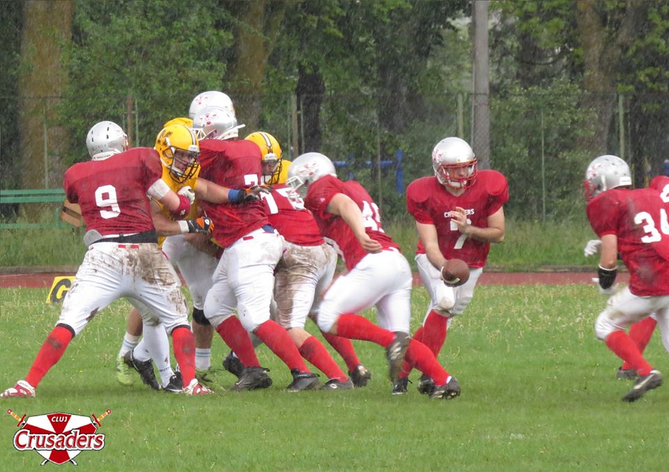 Duminică, clujenii au primit vizita celor de la Mureş Monsters, echipă care participă pentru prima dată în campionatul intern de fotbal american. În ciuda vremii de afară care parcă prevestea sosirea toamnei, şi nicidecum a verii, echipa condusă de Rafael Ruiz, a început în forţă partida. “Monştrii” de pe Mureş au încercat să ţină pasul cu ritmul impus de “Cruciaţi”, însă lipsa de experientă a oaspeţilor s-a oglindit, la sfârşitul primei reprize, pe tabela de marcaj – 32-0 în favoarea clujenilor.