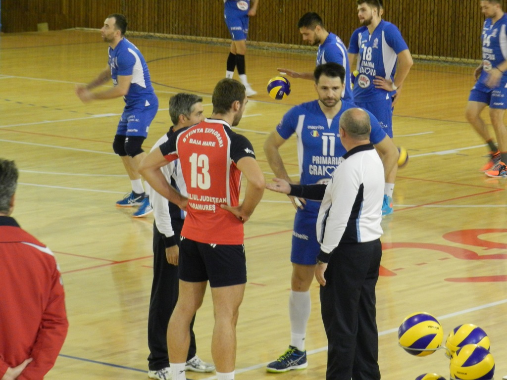 Băimărenii au debutat însă curajos în meci și au condus în primul set cu 6-5. A urmat o serie de sevicii bine executate de Marian Bala și gazdele au preluat conducerea cu 10-6, iar mai apoi cu 16-11 la primul timp tehnic de odihnă. Explorări a revenit însă și a egalat la 16, grație serviciilor lui Zoltan Kovacs, care a speculat nesiguranța la preluare a aceluiași Marian Bala. În continuare echilibrul s-a menținut până la scorul de 22-22, dar de aici băimărenii n-au mai făcut niciun punct și gazdele s-au impus cu 25-22.