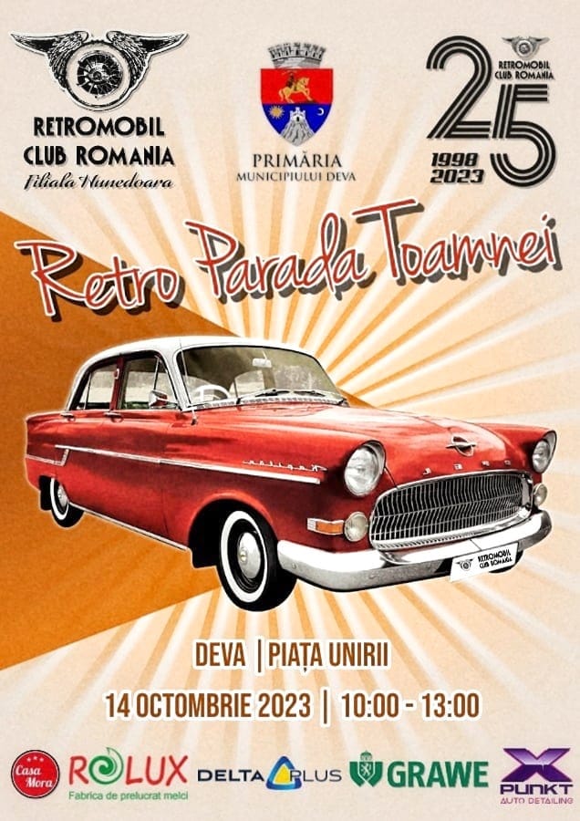 Retromobil Club România – Filiala Hunedoara, în parteneriat cu Primăria Municipiului Deva organizează sâmbătă 14 octombrie 2023, evenimentul ,,Retro Parada Toamnei 2023”.