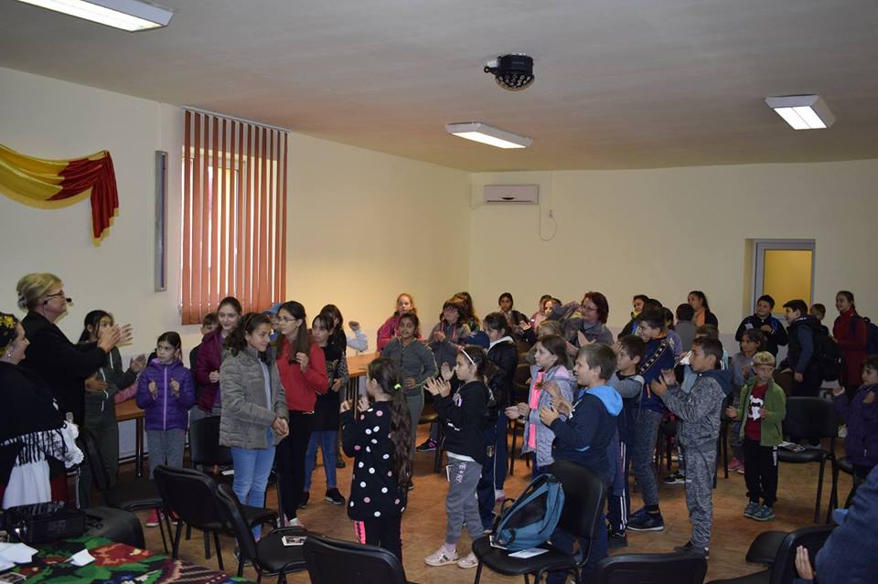 Peste 100 de elevi, alături de profesorii lor, au luat parte la Căminul Cultural la o oră deschisă de folclor, în care au aflat amănunte despre proiectele cultural-educative din cadrul Centrului, proiecte la care ei pot să participe cu momente tradiționale, precum concursuri de interpretare a muzicii populare, festivaluri de colinde, sau cele de meșteșuguri tradiționale.