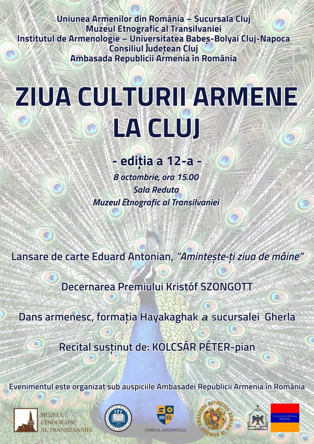 Muzeul Etnografic al Transilvaniei, instituție publică de cultură ce funcționează sub autoritatea Consiliului Județean Cluj, în colaborare cu Uniunea Armenilor din România, Sucursala Cluj și Institutul de Armenologie din cadrul Universității Babeș-Bolyai, invită publicul interesat să ia parte sâmbătă, 8 octombrie 2022, începând cu ora 15.00, la Ziua Culturii Armene la Cluj, ediția a 12-a.
