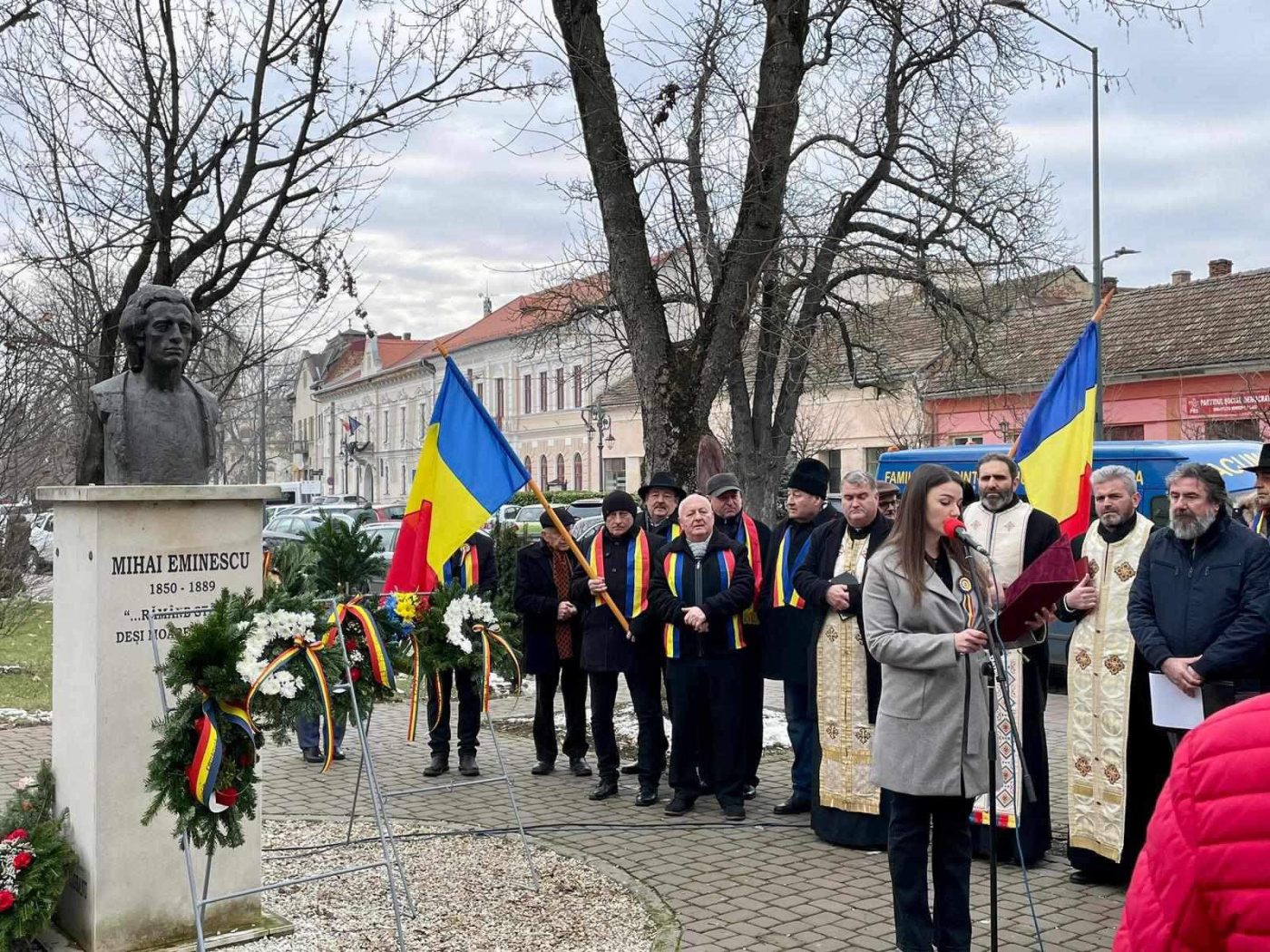 La bustul poetului național Mihai Eminescu a avut loc un scurt moment comemorativ și depuneri de coroane.