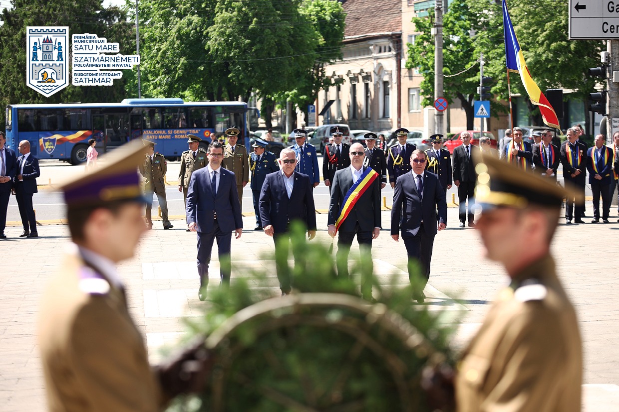 Cu ocazia sărbătoririi Zilei Independenței de Stat a României, Zilei Victoriei Coaliției Națiunilor Unite în cel de-al Doilea Război Mondial și Zilei Uniunii Europene, primarul Kereskényi Gábor Gábor, viceprimarii Gheorghe Stan și Adelin Cristian Ghiarfaș, precum și administratorul public Maskulik Csaba au depus o coroană de flori la Monumentul Ostașului Român.