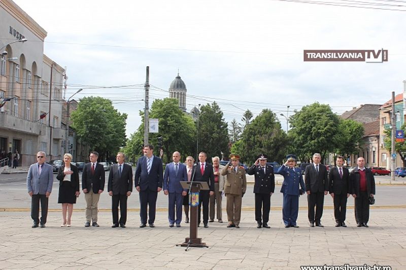 Manifestările s-au mutat la Monumentul Ostașului Român unde tenorul Marian Buzilă a intonat imnul de stat al României, după care s-a intonat imnul Europei și s-a trecut la slujba religioasă. După alocuțiunile rostite s-au depus coroane de flori la Monumentul Ostașului Român din partea Prefecturii, Consiliului Județean și a Primăriei Satu Mare. Evenimentele au fost prezentate de maiorul Camelia Lucuț.