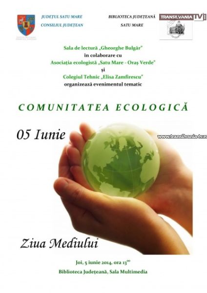 Biblioteca Judeţeană, instituție publică de cultură din subordinea Consiliului Județean Satu Mare, organizează joi, 5 iunie, cu începere de la ora 13.00, acțiunea cu tema „Comunitatea ecologică”.